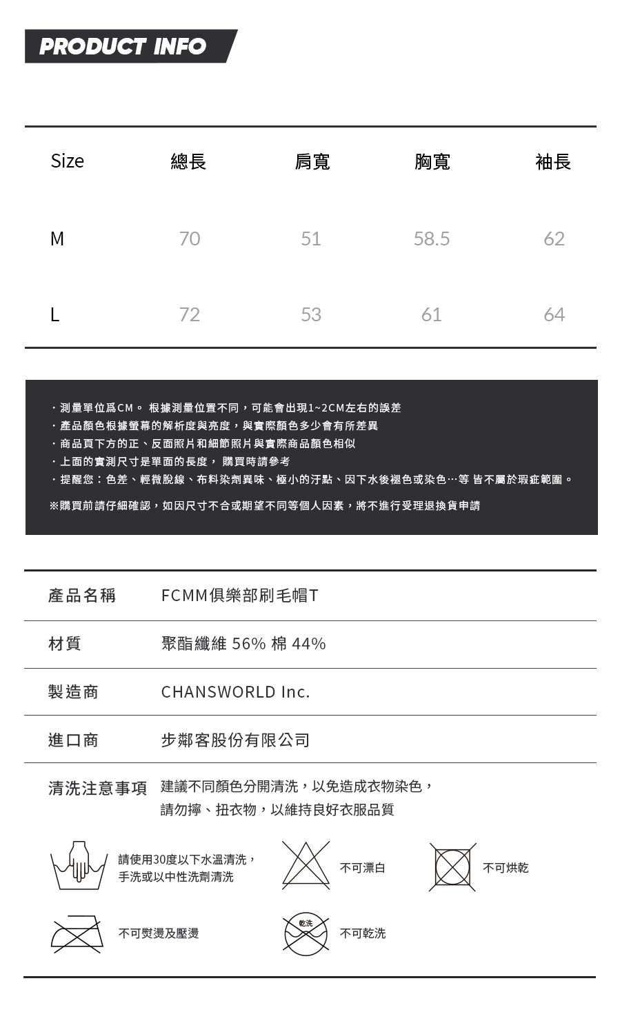 | FCMM俱樂部刷毛帽T 試穿報告參考 | ||||