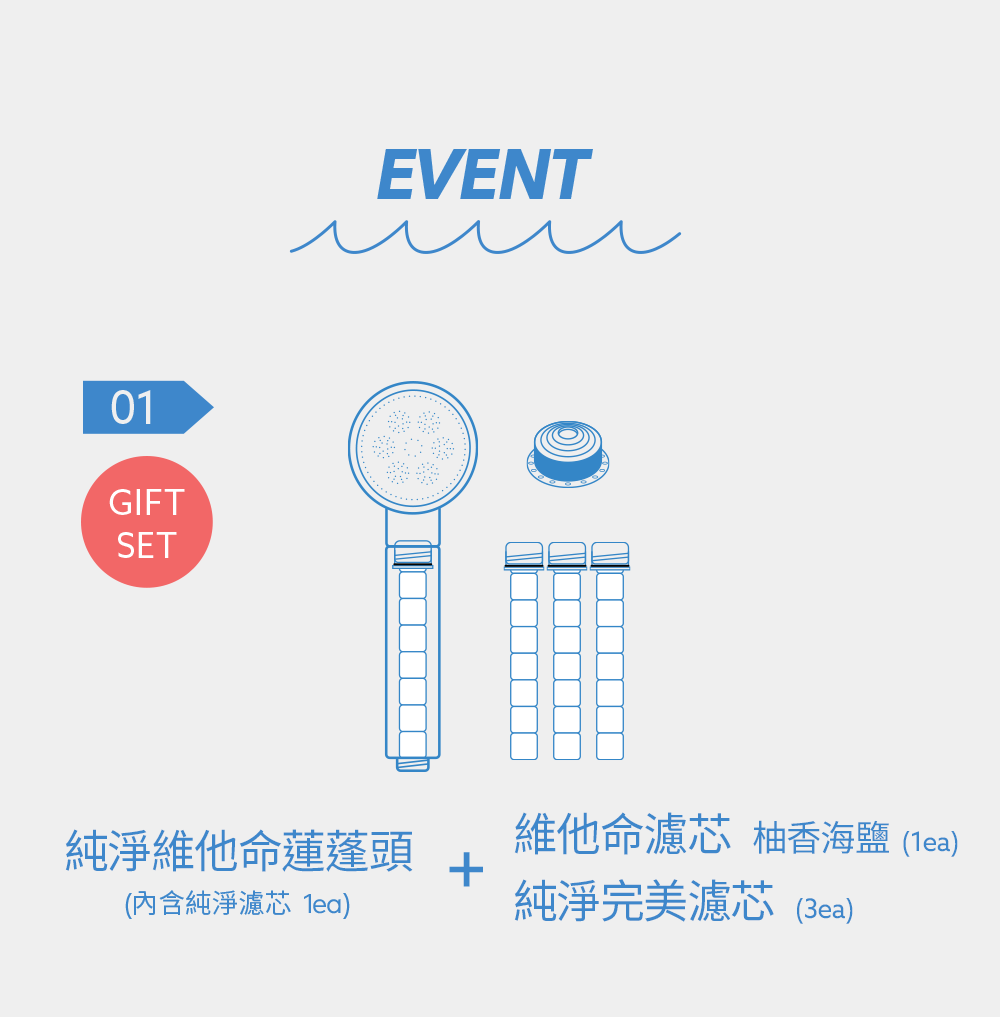 維他命濾芯 去除餘氯 + 維他命C保濕